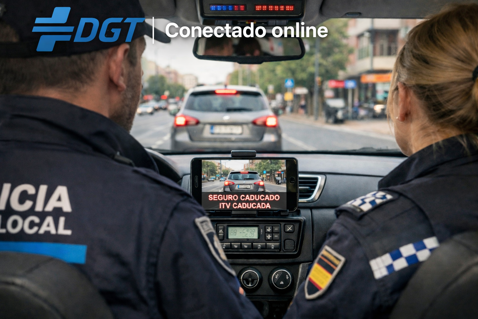 Control automático de vehículos desde el coche patrulla todo los vehículos que circulan por la vía bien sea en el sentido del coche patrulla o en sentido contrario Podrán ser Leídas la matrícula automáticamente Y se indicará si tiene alguna Incidencia En la DGT.