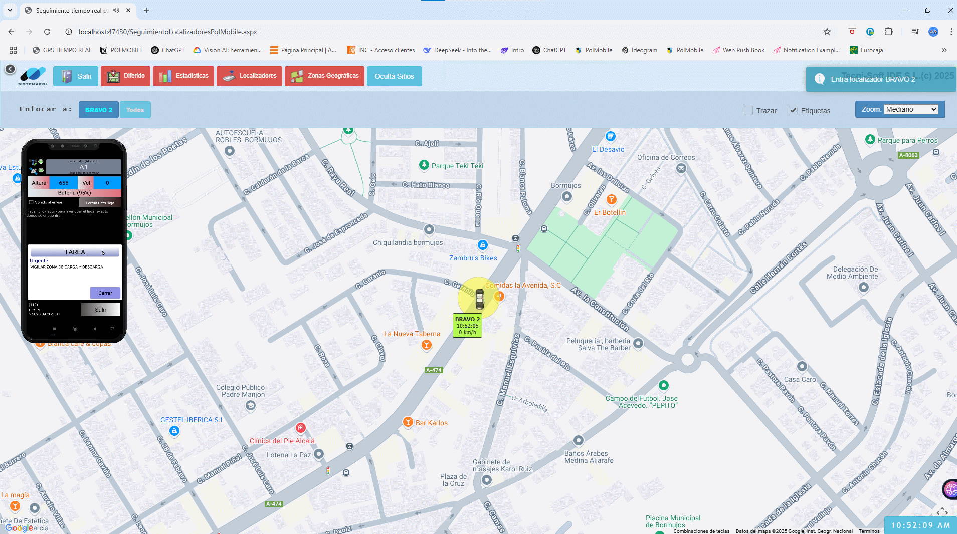 Sistema de control de GPS integrado para el seguimiento de patrullas y también para la ubicación de eventos Intervenciones e incidencias, todo podrá quedar georeferenciado mediante la integración con Google Maps El sistema Seguimiento de patrullas se hace mediante software de forma que no es necesario tener ningún dispositivo Instalado en el coche patrulla, simplemente con la aplicación GPSPol Estando en memoria automáticamente enviará los posicionamientos.