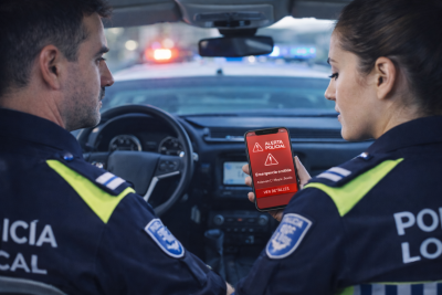 Alerta Policial app mediante el cual aquellas personas protegidas podrán hacer uso en el caso de que se encuentren en una situación de peligro. Dicha alerta será remitida a PolMobile y a los teléfonos corporativos de los agentes.