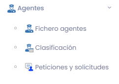 En este grupo de menús se gestiona el fichero de agentes. Ésta es una tarea inicial prioritaria que se debe realizar al comenzar a usar MiJefatura. Una vez hecho ésto, podemos dar de alta los perfiles y usuarios.